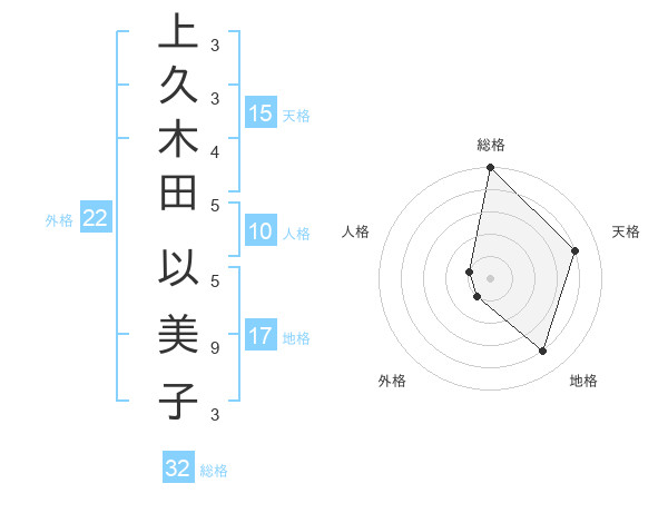 上久木田 以美子さんの総格は32画の5点!