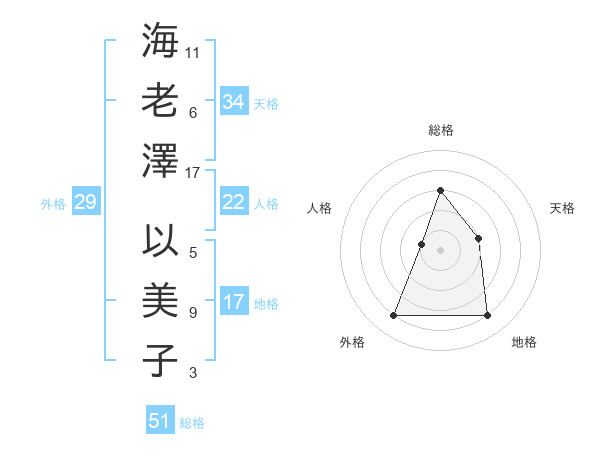 海老澤 以美子さんを姓名の画数から五運を鑑定