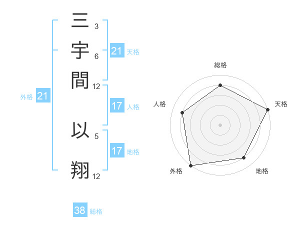 三宇間 以翔さんの外格は21画の5点!