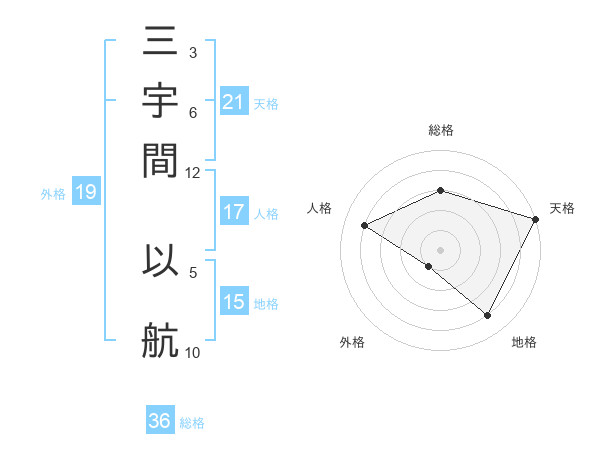 三宇間 以航さんを姓名の画数から五運を鑑定