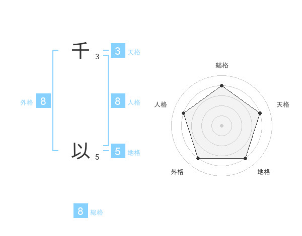 千 以さんの外格は8画の4点!