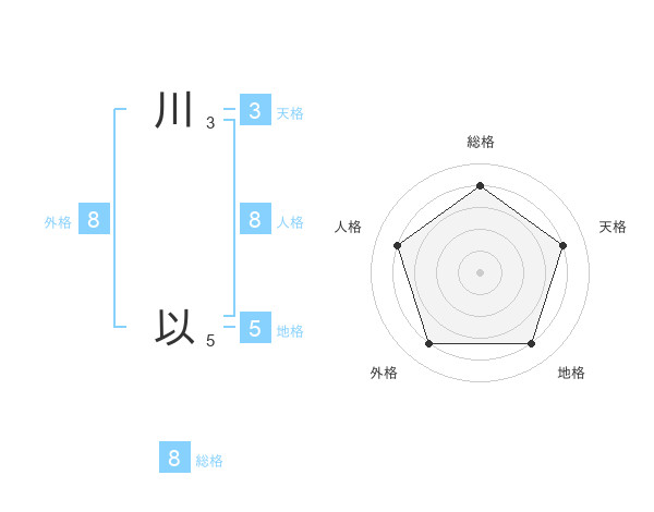 川 以さんの外格は8画の4点!