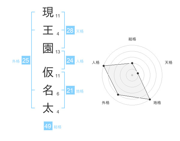 現王園 仮名太さんを姓名の画数から五運を鑑定
