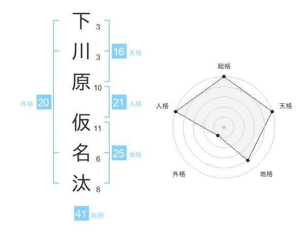 下川原 仮名汰さんを姓名の画数から五運を鑑定