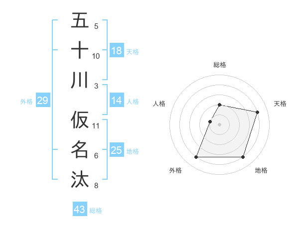 五十川 仮名汰さんの天格は18画の4点!