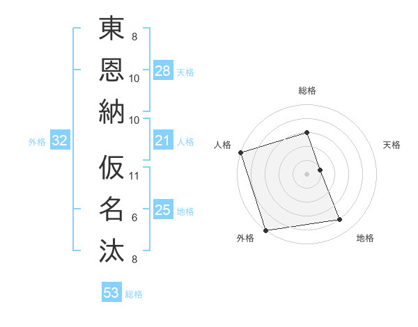 東恩納 仮名汰さんの総格は53画の3点!