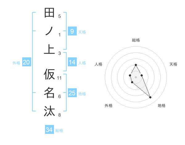 田ノ上 仮名汰さんを姓名の画数から五運を鑑定