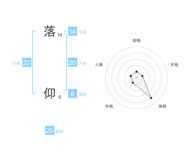落 仰さんの総格は20画の1点!
