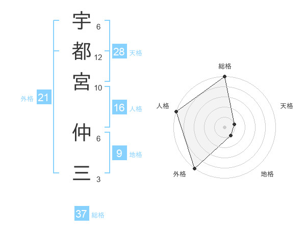 宇都宮 仲三さんを姓名の画数から五運を鑑定