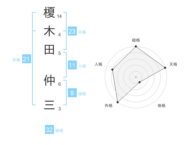 榎木田 仲三さんを姓名の画数から五運を鑑定