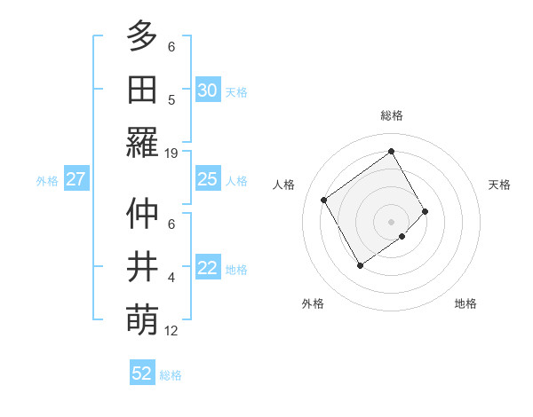 多田羅 仲井萌さんを姓名の画数から五運を鑑定
