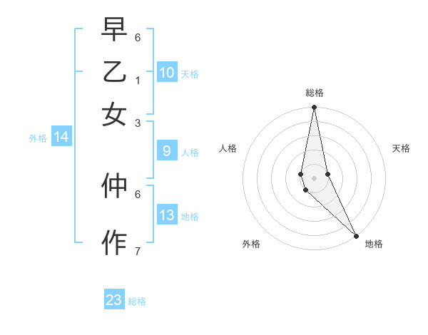早乙女 仲作さんを姓名の画数から五運を鑑定