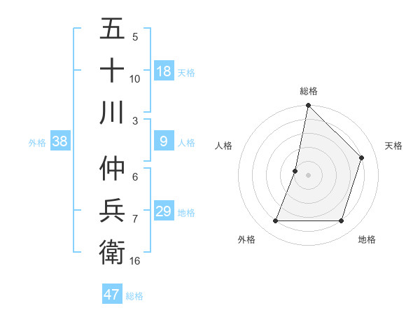 五十川 仲兵衛さんの総格は47画の5点!