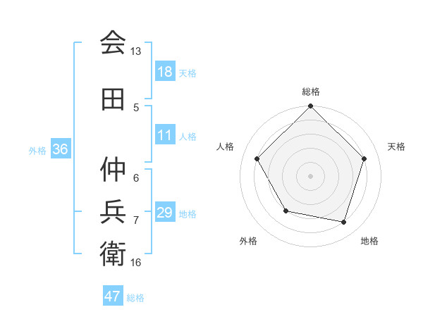 会田 仲兵衛さんを姓名の画数から五運を鑑定