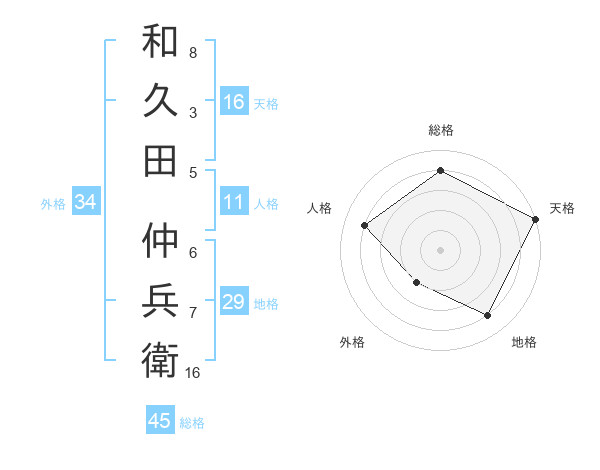 和久田 仲兵衛さんの天格は16画の5点!