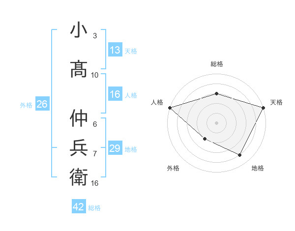 小髙 仲兵衛さんを姓名の画数から五運を鑑定