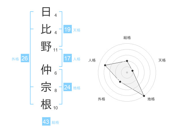 日比野 仲宗根さんを姓名の画数から五運を鑑定