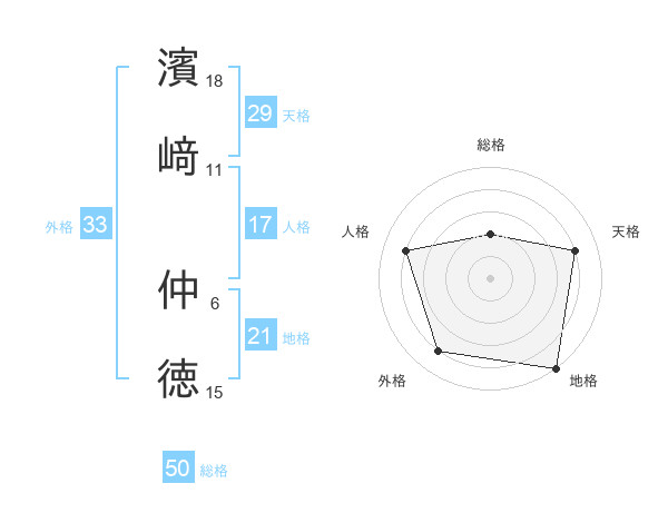 濱﨑 仲徳さんを姓名の画数から五運を鑑定