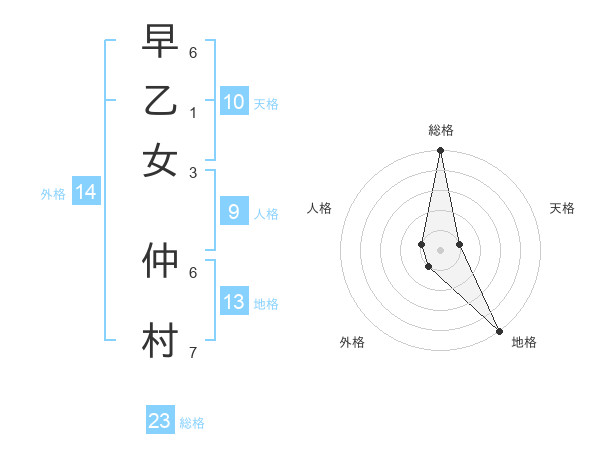 早乙女 仲村さんを姓名の画数から五運を鑑定