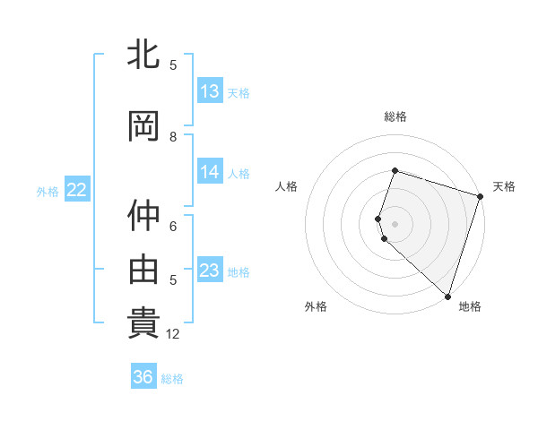北岡 仲由貴さんを姓名の画数から五運を鑑定