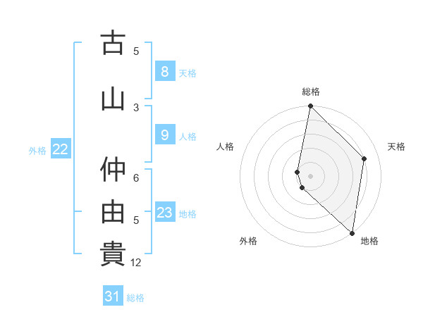 古山 仲由貴さんの総格は31画の5点!