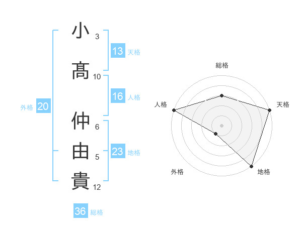 小髙 仲由貴さんを姓名の画数から五運を鑑定