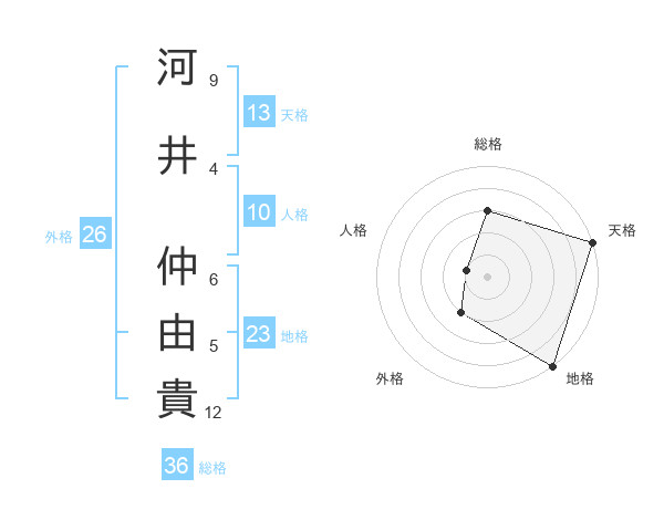 河井 仲由貴さんを姓名の画数から五運を鑑定