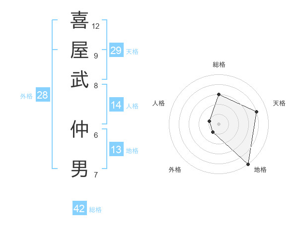 喜屋武 仲男さんの総格は42画の3点!