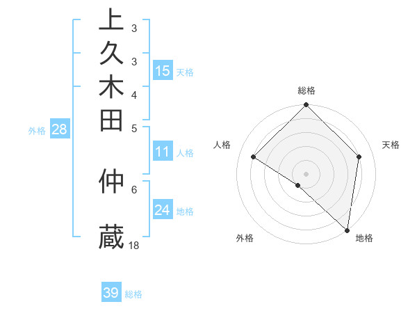 上久木田 仲蔵さんを姓名の画数から五運を鑑定