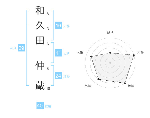 和久田 仲蔵さんを姓名の画数から五運を鑑定
