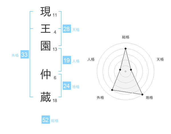 現王園 仲蔵さんを姓名の画数から五運を鑑定