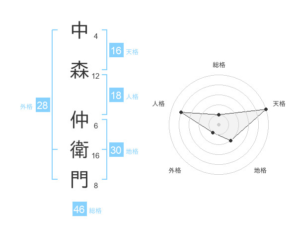 中森 仲衛門さんを姓名の画数から五運を鑑定