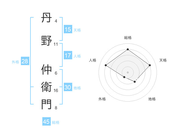 丹野 仲衛門さんを姓名の画数から五運を鑑定