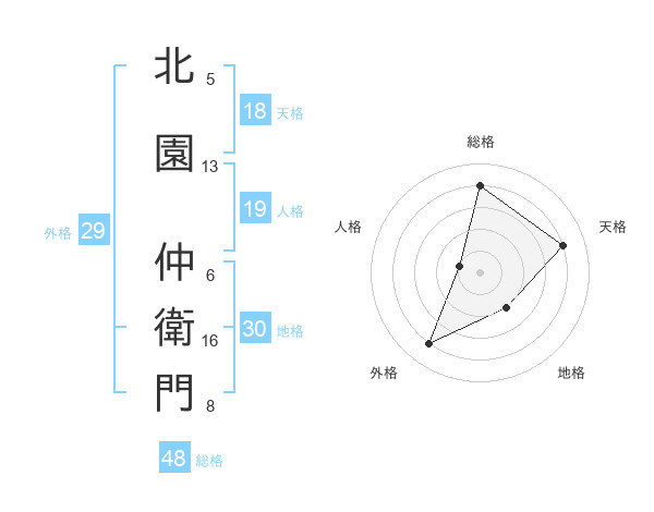 北園 仲衛門さんを姓名の画数から五運を鑑定