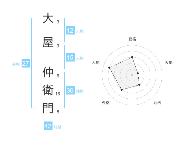 大屋 仲衛門さんを姓名の画数から五運を鑑定