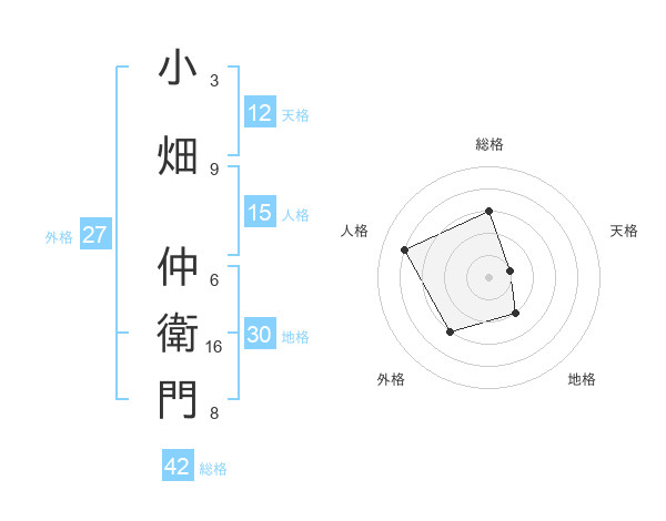小畑 仲衛門さんを姓名の画数から五運を鑑定
