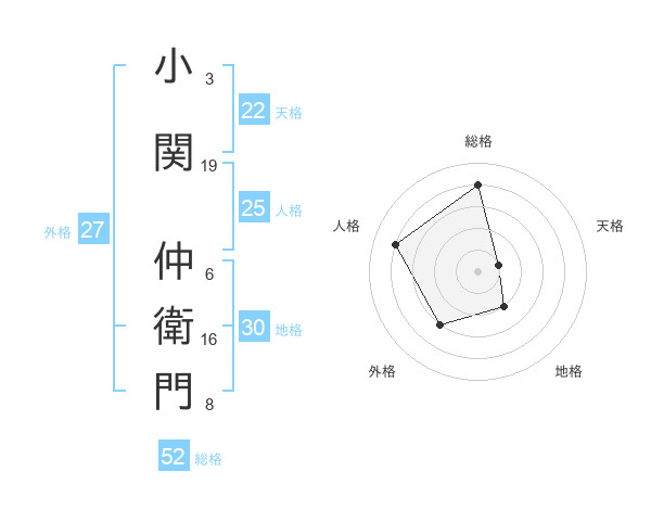 小関 仲衛門さんの総格は52画の4点!