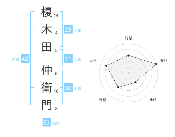 榎木田 仲衛門さんの総格は53画の3点!
