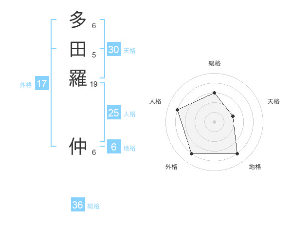 多田羅 仲さんを姓名の画数から五運を鑑定