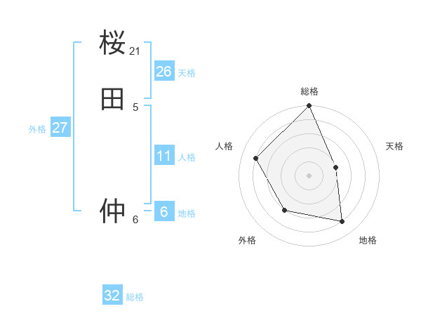 桜田 仲さんの総格は32画の5点!