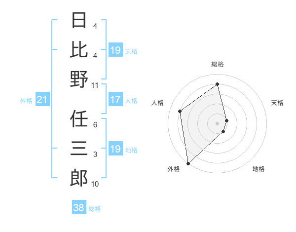日比野 任三郎さんを姓名の画数から五運を鑑定