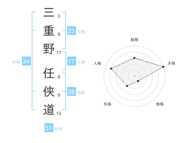 三重野 任侠道さんを姓名の画数から五運を鑑定