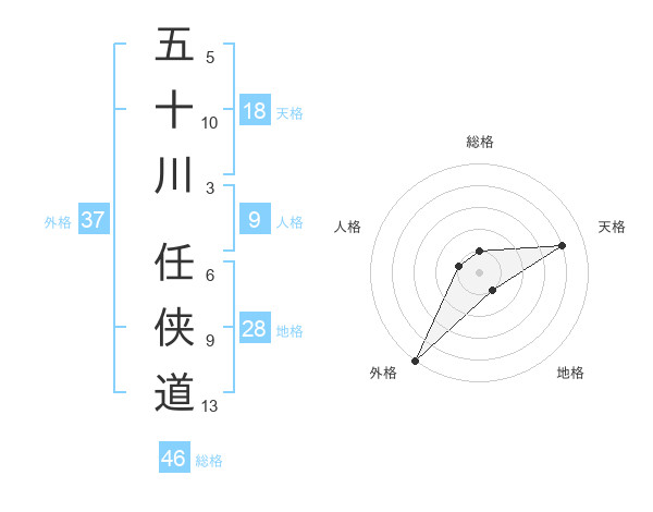 五十川 任侠道さんの総格は46画の1点!