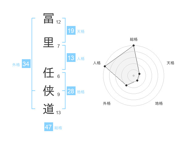 冨里 任侠道さんを姓名の画数から五運を鑑定