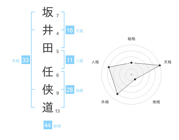 坂井田 任侠道さんを姓名の画数から五運を鑑定