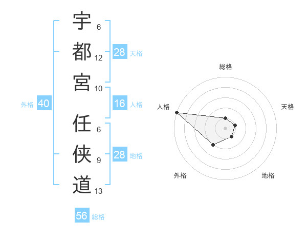 宇都宮 任侠道さんを姓名の画数から五運を鑑定