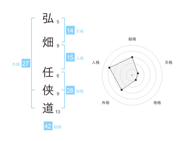 弘畑 任侠道さんの総格は42画の3点!