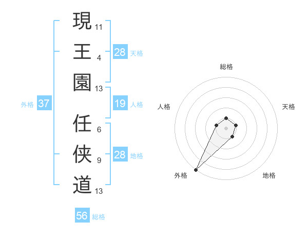 現王園 任侠道さんを姓名の画数から五運を鑑定