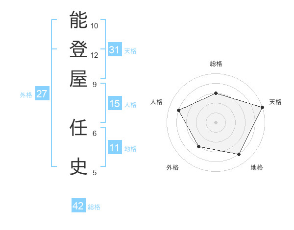 能登屋 任史さんを姓名の画数から五運を鑑定
