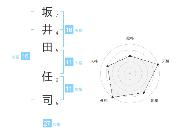 坂井田 任司さんを姓名の画数から五運を鑑定